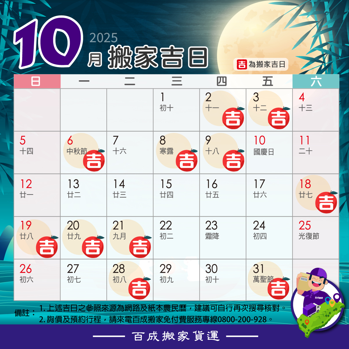 百成搬家貼心幫您算好搬家吉日~