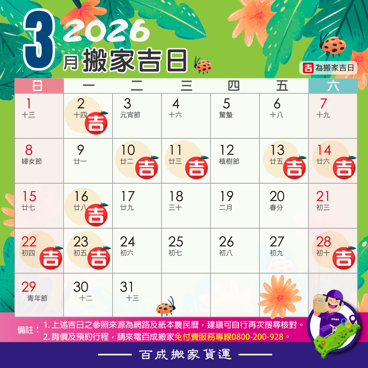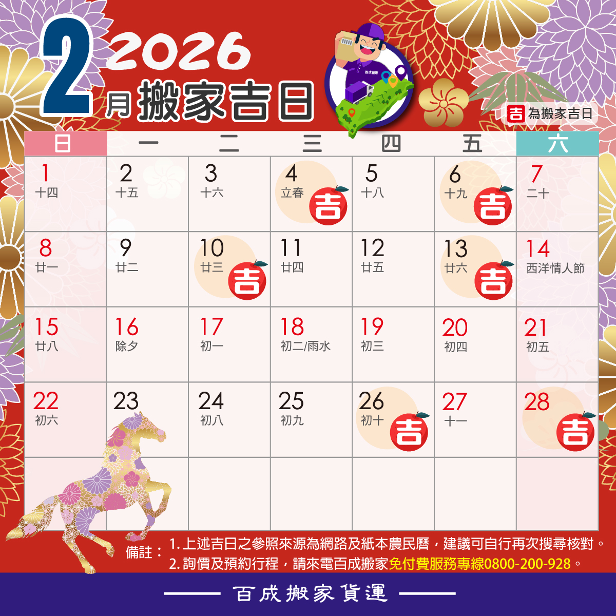 百成搬家貼心幫您算好搬家吉日~
